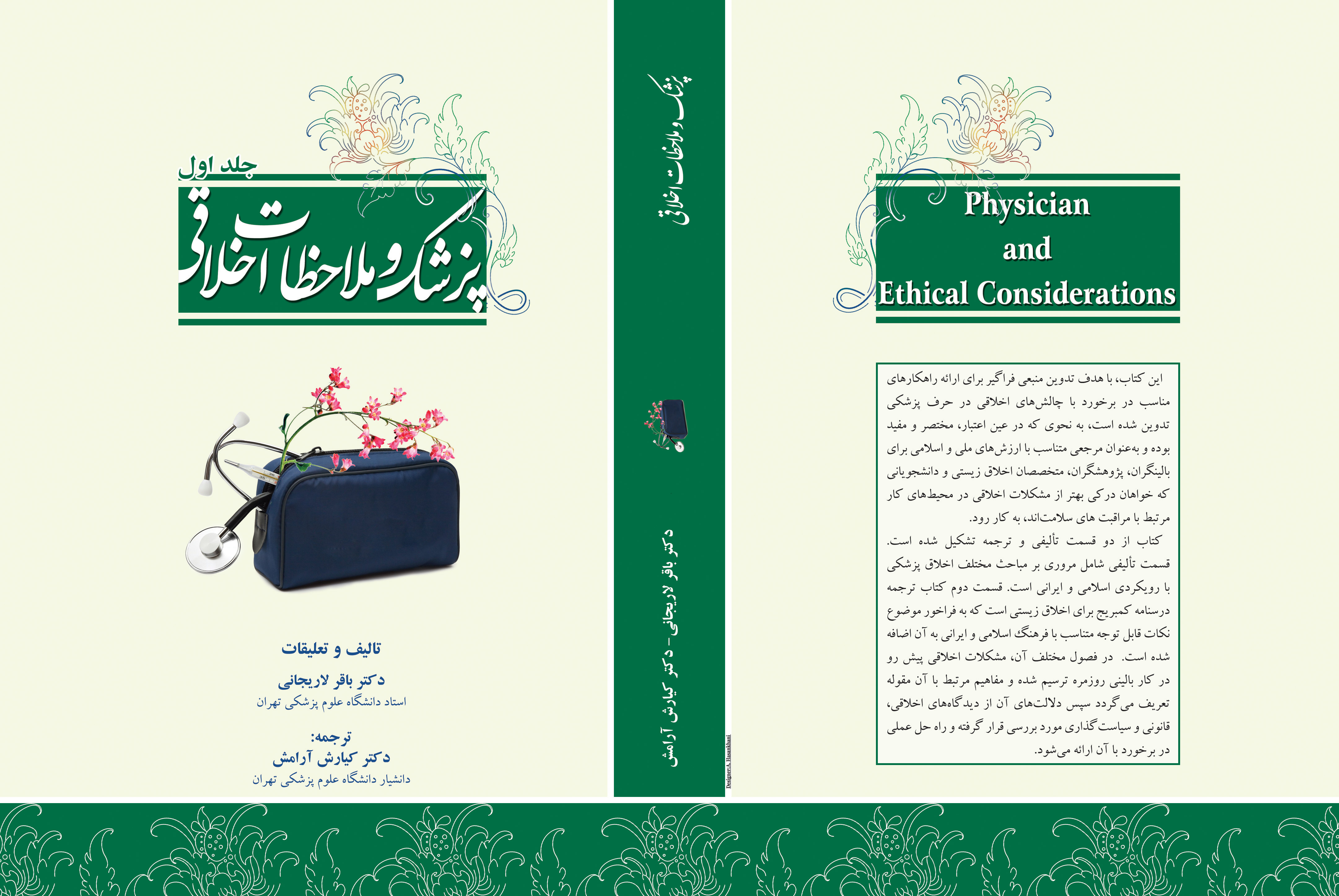 نام کتاب: پزشک و ملاحظات اخلاقی جلد اول نویسنده: دکتر باقر لاریجانی و همکاران سال نشر: 1403 |