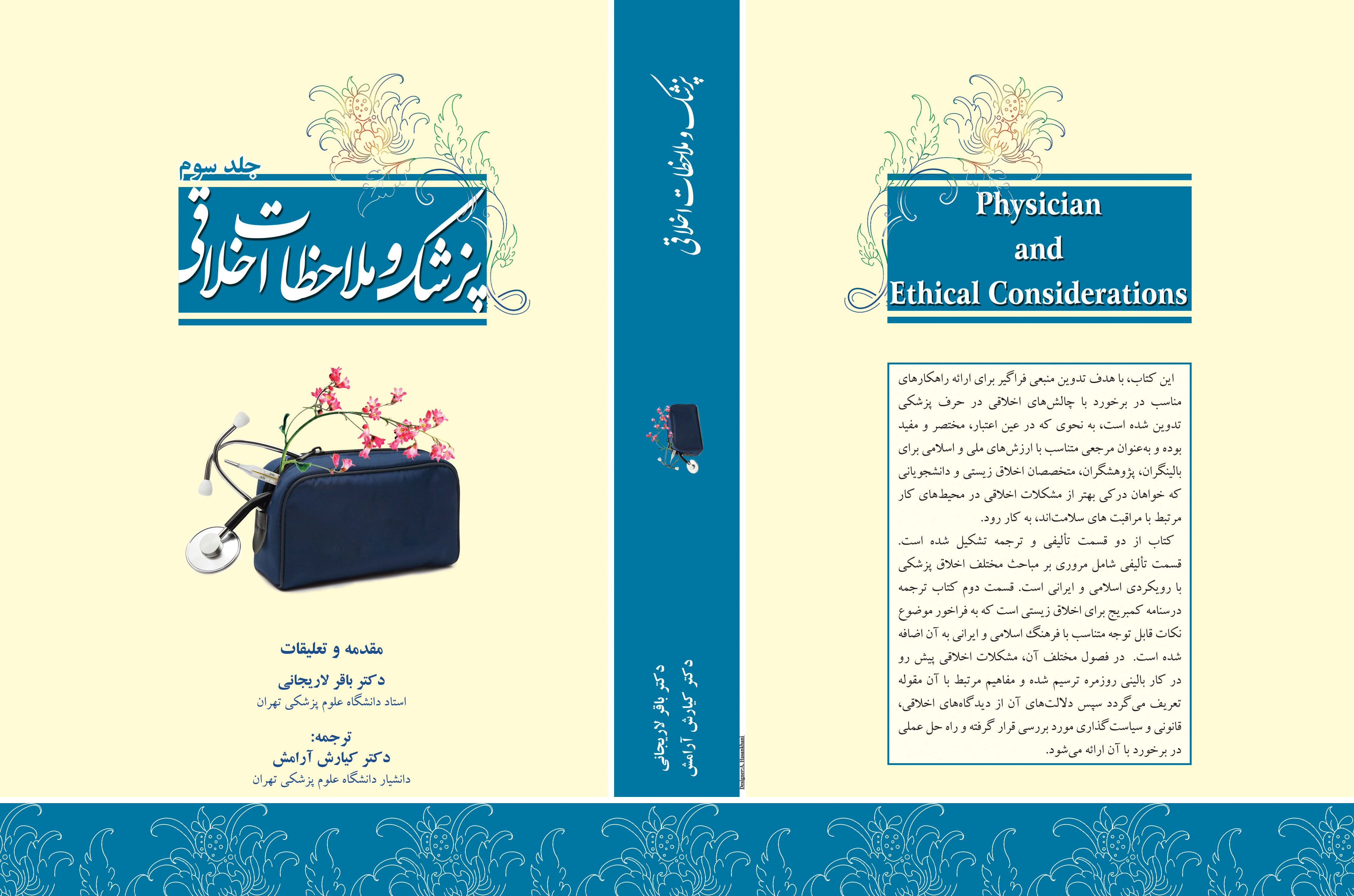 نام کتاب: پزشک و ملاحظات اخلاقی جلد سوم نویسنده: دکتر باقر لاریجانی و همکاران سال نشر: 1403 |